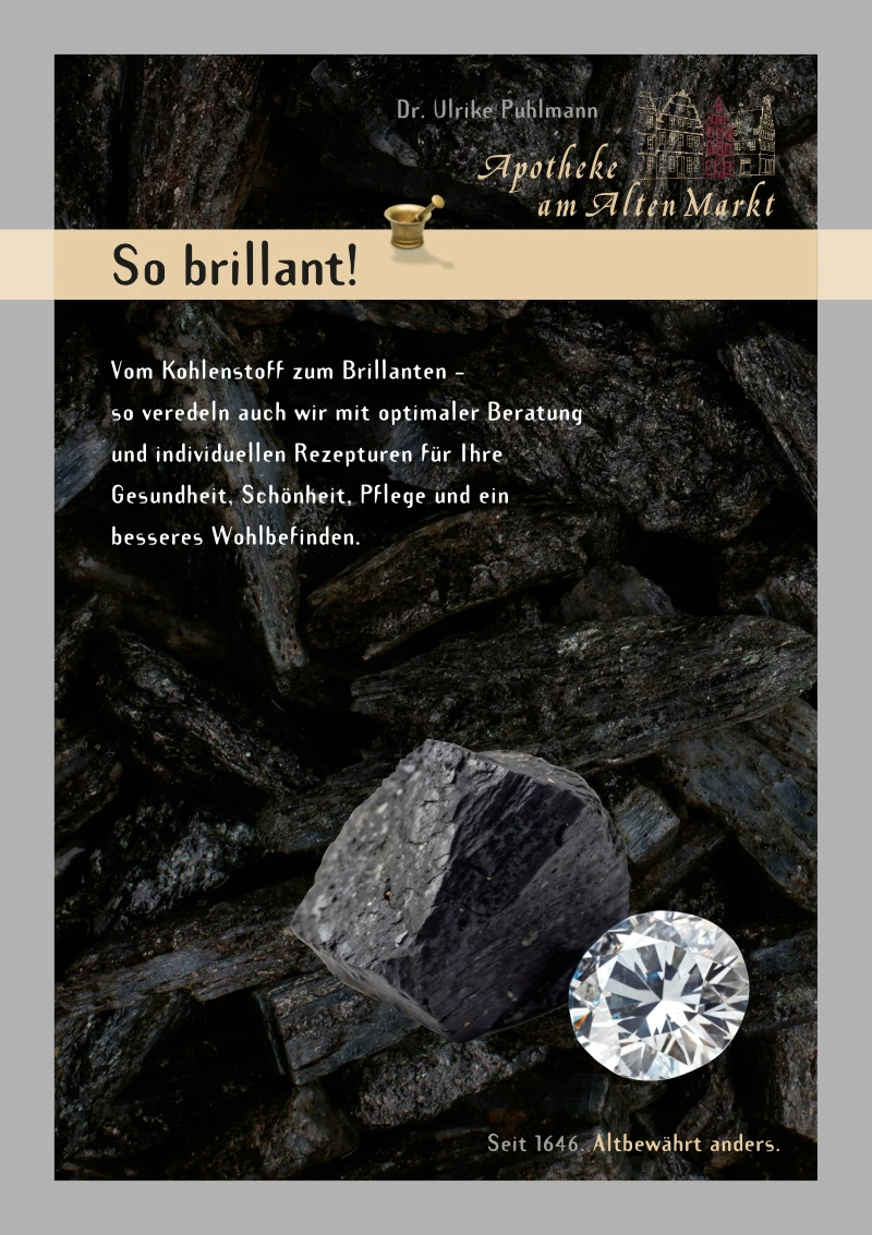 Vom Kohlenstoff zum Brillanten – so veredeln auch wir mit optimaler Beratung und individuellen Rezepturen für Ihre Gesundheit, Schönheit, Pflege und ein besseres Wohlbefinden.